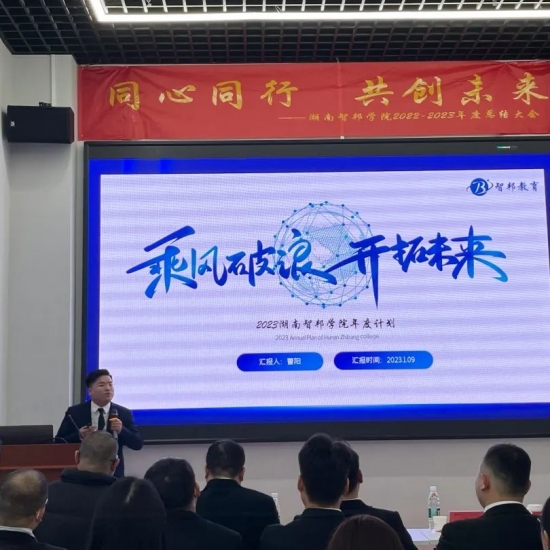 2023年1月9日,以“同心同行,共创未来”为主题的2022-2023年度总结大会在湖南智邦学院多功能演播厅隆重举行,本次大会总结了过去一年的问题与不足,展望了未来一年的方向和目标。